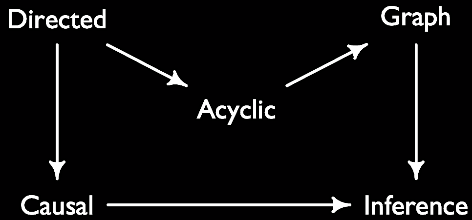 coordinates(DAG) <- list(x=c(Directed=0,Acyclic=.5,Graph=1,Causal=0,Inference=1),